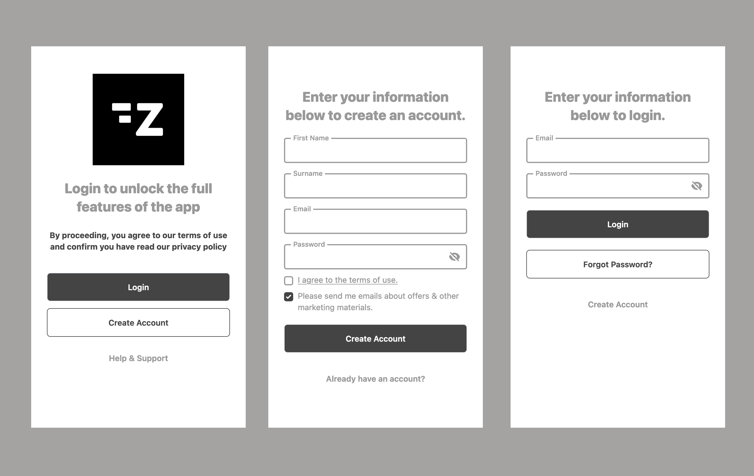 - Can be used as a standalone Login/Sign Up screen which could be accessed by the user from settings or any navigation action, or as a gatekeeper to restrict specific content in the app.